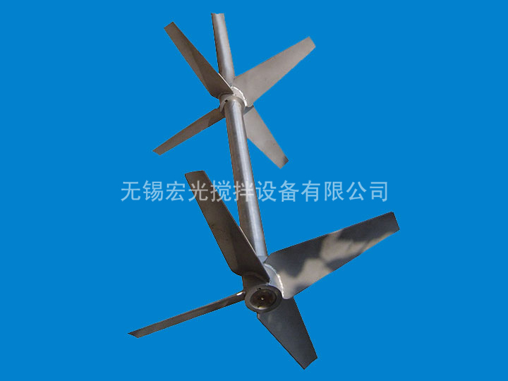 有平槳式和斜槳式兩種。平槳式攪拌器由兩片平直槳葉構(gòu)成。槳葉直徑與高度之比為 4~10,圓周速度為1.5~3m/s,所產(chǎn)生的徑向液流速度小。斜槳式攪拌器的兩葉相反折轉(zhuǎn)45°或60°,因而產(chǎn)生軸向液流。槳式攪拌器結(jié)構(gòu)簡單,常用于低粘度液體的混合以及固體微粒的溶解和懸浮。