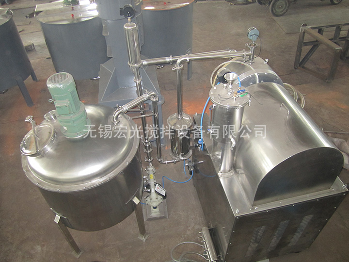 加料泵將預(yù)分散的材料送人研磨桶,研磨筒內(nèi)裝有研磨介質(zhì),磨細(xì)后的物料經(jīng)動(dòng)態(tài)分離器排出,視產(chǎn)品細(xì)度不同,可采用單臺(tái)連續(xù)或多臺(tái)串聯(lián)連續(xù)研磨工藝。